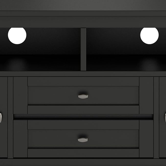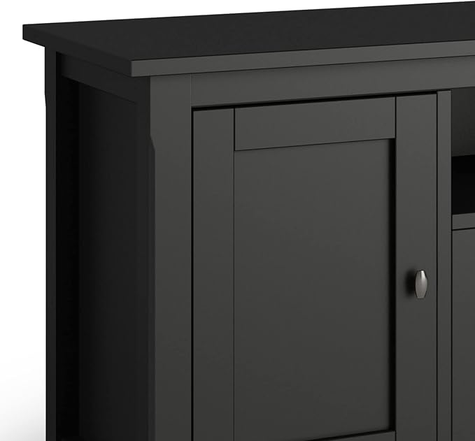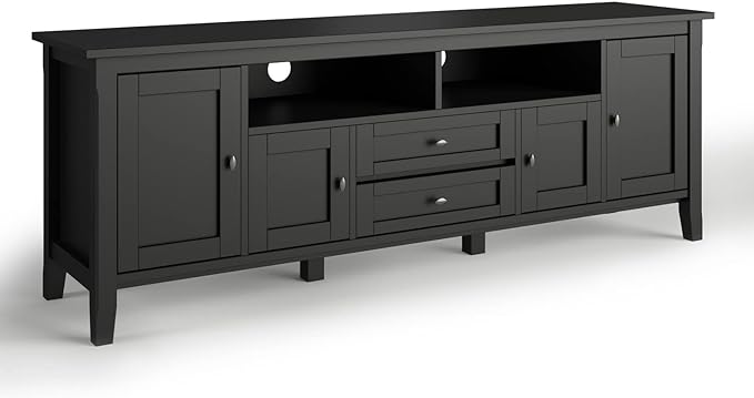 SIMPLIHOME Warm Shaker Style Solid Wood TV Media Stand, 72 inch Wide, Farmhouse Rustic, Living Room Entertainment Center, Storage Shelves and Cabinets, for Flat Screen TVs up to 80 inches in Black