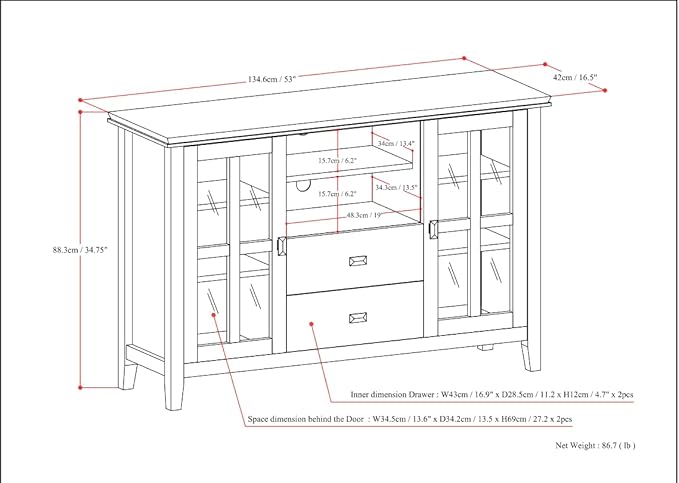 About This Wood DIMENSIONS: 16.5" D x 53" W x 35" H Handcrafted with care using the finest quality solid...