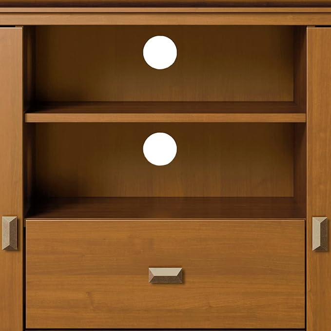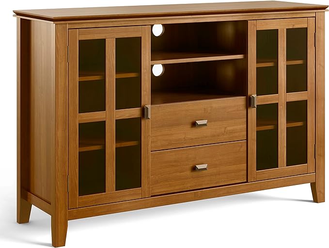 SIMPLIHOME Artisan SOLID WOOD Universal TV Media Stand, 53 inch Wide, Contemporary, Living Room Entertainment Center, Storage Shelves and Cabinets, for Flat Screen TVs up to 60 inches in Honey Brown