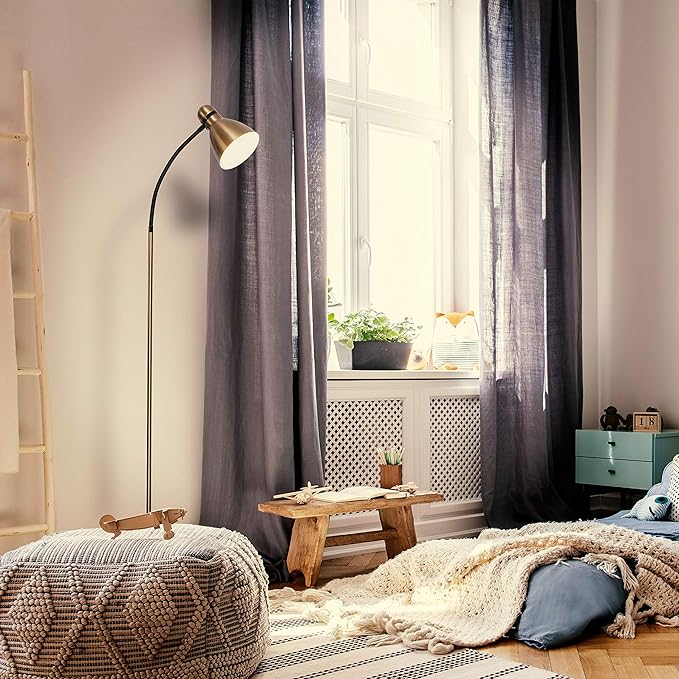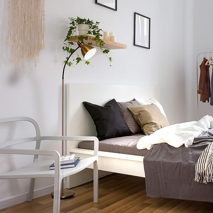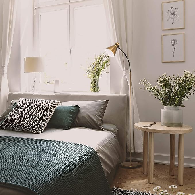 Brightech Avery Floor Lamp, Dimmable Standing Lamp With Sturdy Base, Floor Lamp for Over Chair Bedroom Reading, Modern LED Lamp for Living Rooms, Tall Lamp for Offices, Great Living Room Decor - Brass