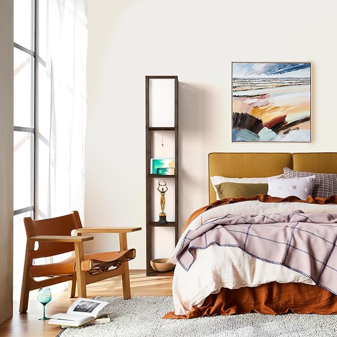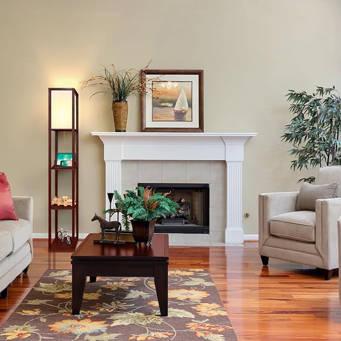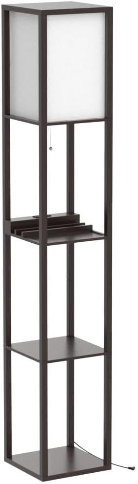 About This The Brown 3-in-1 Cuboid Shelf Floor Lamp: With a TC lamp shade and a wood grain appearance, this...