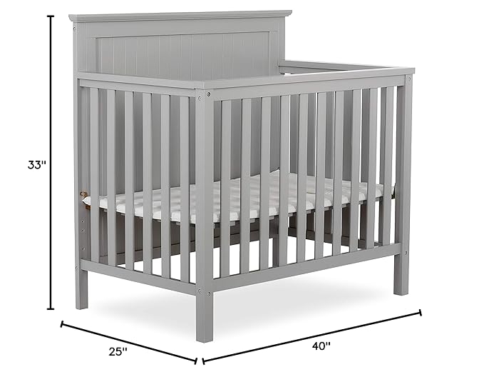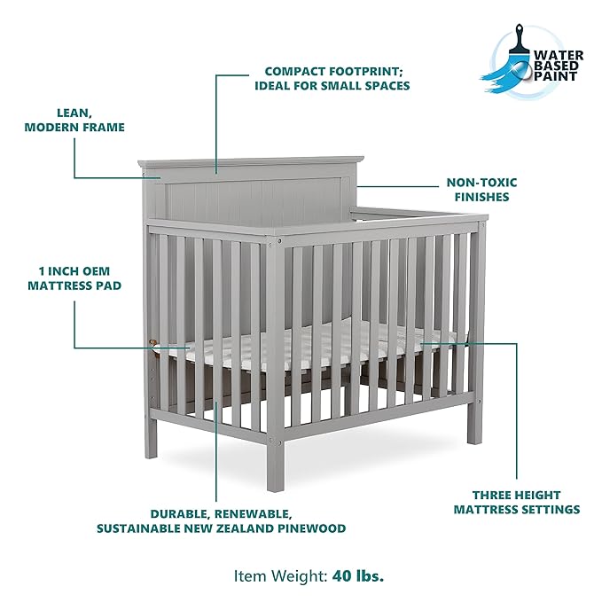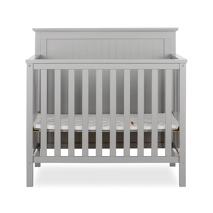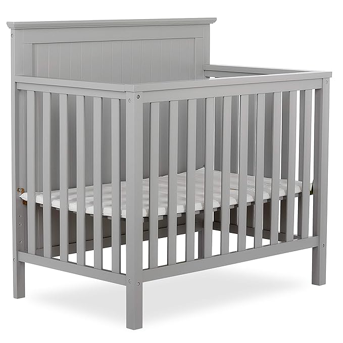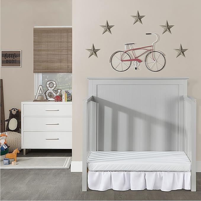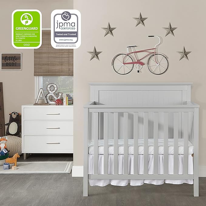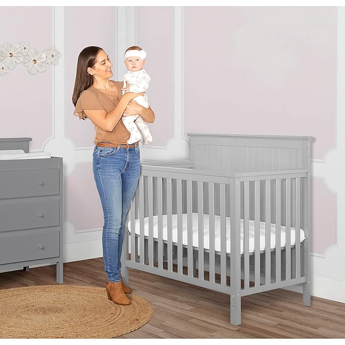 Ava 4-in-1 Convertible Mini Crib in Pebble Grey, 635-PG, Greenguard Gold Certified, Non-Toxic Finish, Comes with 1" Mattress Pad, with 3 Mattress Height Settings