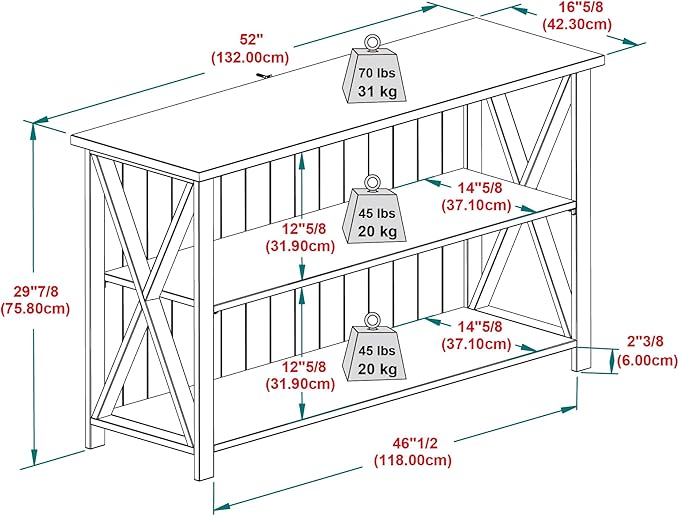 About This Dimensions: 30" H x 52" L x 16.5" Two fixed shelves Cable management features to run cords in...