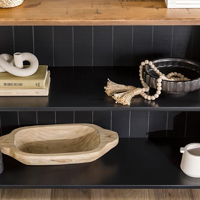 Walker Edison 2 Tier Modern Farmhouse Wood Bookcase Bookshelf Storage Home Office Storage Cabinet, 52 Inch, Black