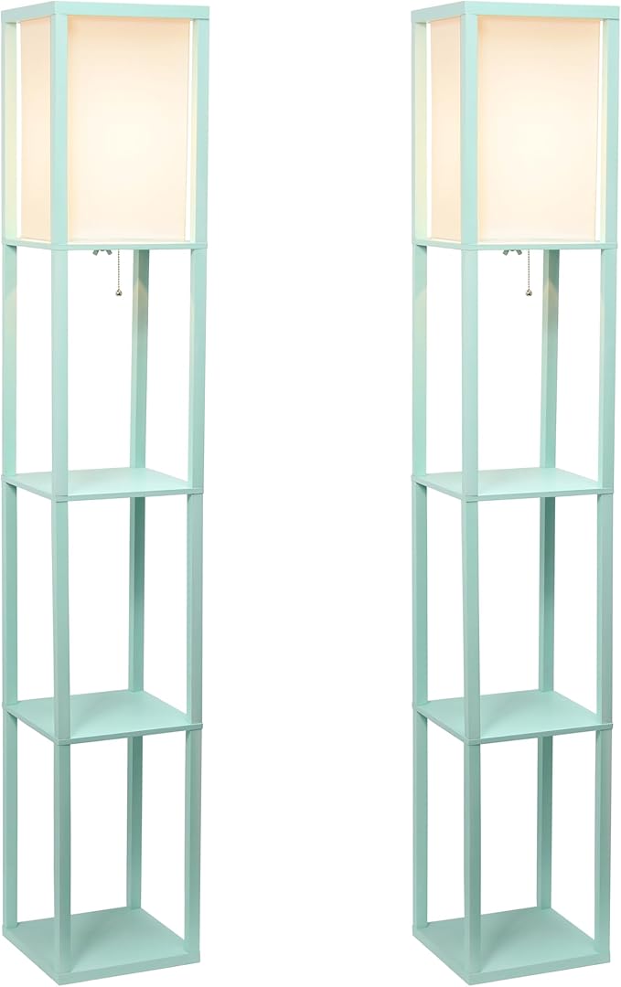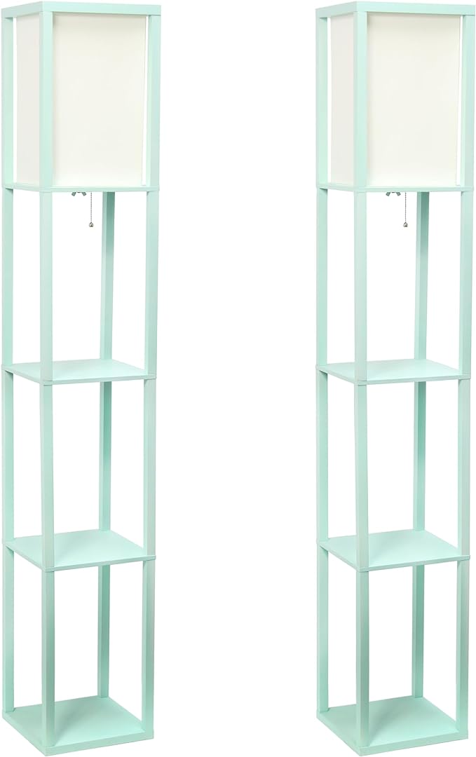 Simple Designs LF1014-AQU Etagere Organizer Storage Shelf Linen Shade Floor Lamp, Aqua