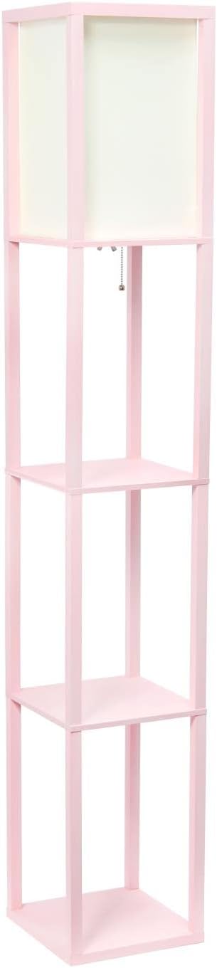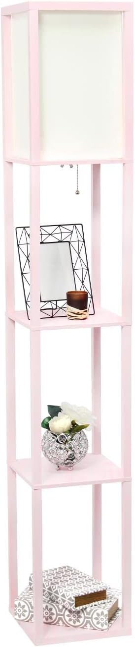 Simple Designs LF1014-LPK Etagere Organizer Storage Shelf Linen Shade Floor Lamp, Light Pink