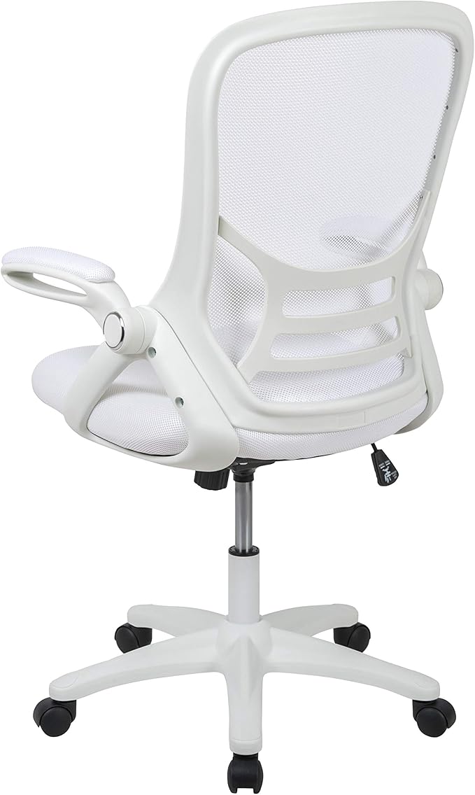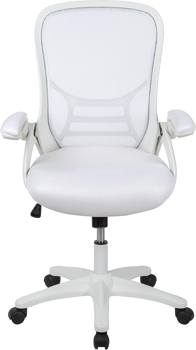 Flash Furniture Porter High-Back Swivel Office Chair with Adjustable Lumbar Support and Seat Height, Ergonomic Mesh Desk Chair with Flip-Up Armrests, White
