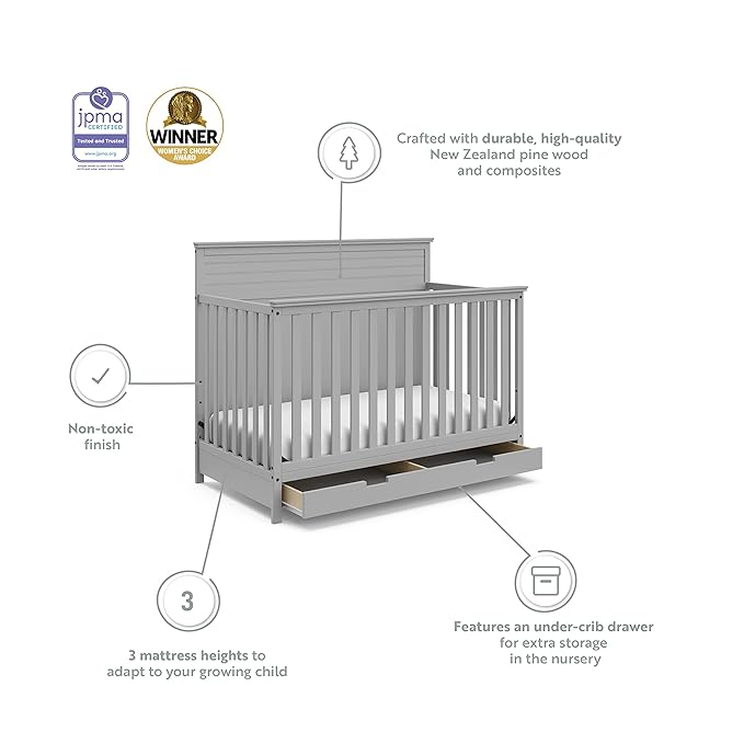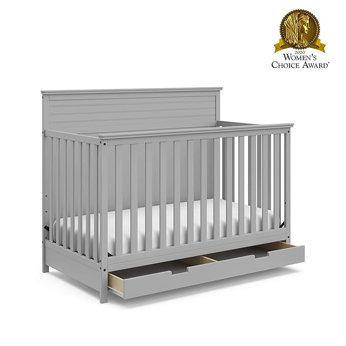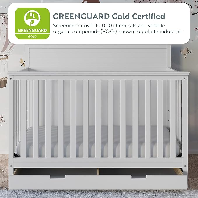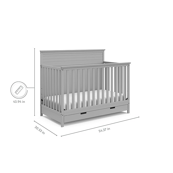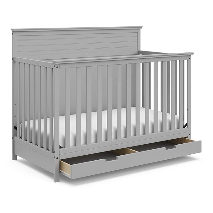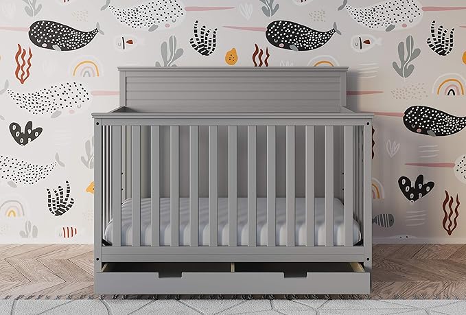 STORKCRAFT Homestead 5-in-1 Convertible Crib with Drawer (Pebble Gray) – GREENGUARD Gold Certified, Crib with Drawer Combo, includes Nursery Storage Drawer, Converts to Toddler Bed and Full-Size Bed