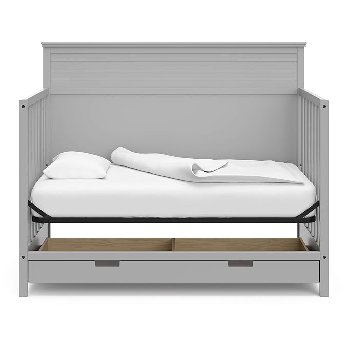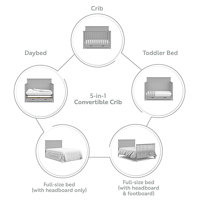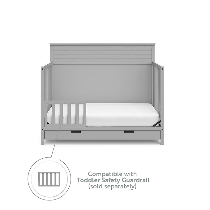 About This 5-IN-1 CONVERTIBLE CRIB: Converts from baby crib (mattress sold separately) to toddler bed (toddler guardrail sold separately), daybed,...