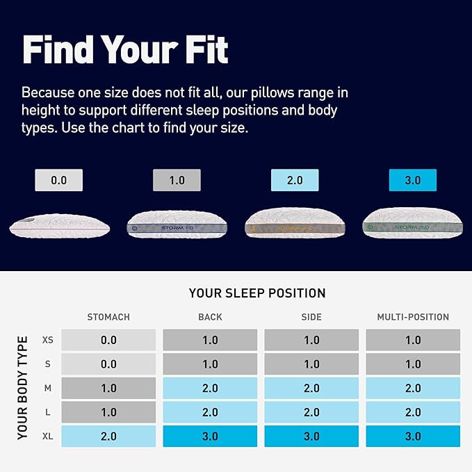 Bedgear Storm Performance Pillow - Size 0.0 - Cooling Pillow for Hot Sleepers - Medium Firmness Bed Pillow for All Sleep Positions - Hypoallergenic, Washable Removable Cover - 20" W x 26" L x 4.75" H
