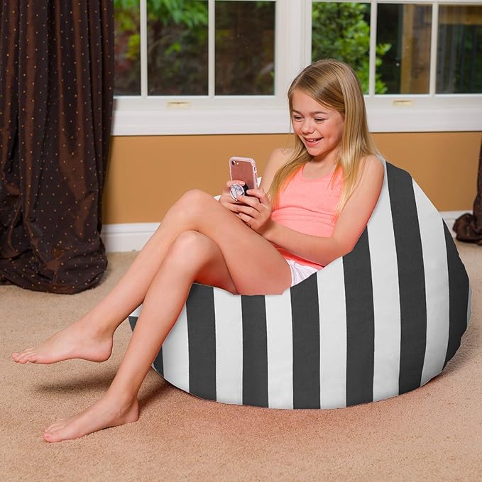 Posh Creations Bean Bag Chair for Kids, Teens, and Adults Includes Removable and Machine Washable Cover, Canvas Stripes Gray and White, 38in - Large