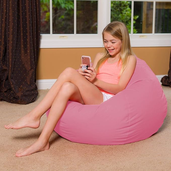 Posh Creations Bean Bag Chair for Kids, Teens, and Adults Includes Removable and Machine Washable Cover, Solid Pink, 38in - Large