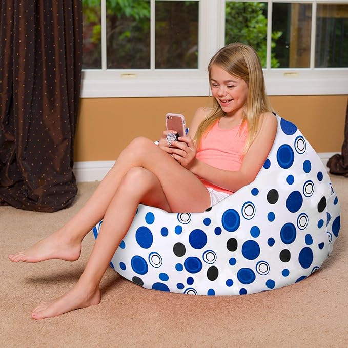 Posh Creations Bean Bag Chair for Kids, Teens, and Adults Includes Removable and Machine Washable Cover, Canvas Bubbles Blue and White, 38in - Large