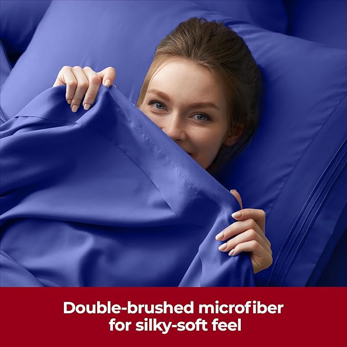 Mellanni Extra Deep King Sheets - 4 PC Iconic Collection Bedding Sheets & Pillowcases - Hotel Luxury, Ultra Soft, Cooling Bed Sheets - Extra Deep Pocket up to 21 inch (King, Royal Blue)