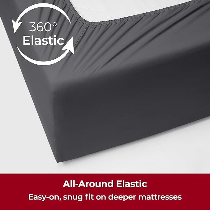 Mellanni Extra Deep Split King Sheets - 5 PC Iconic Collection Bedding Sheets & Pillowcases - Hotel Luxury, Ultra Soft, Cooling Bed Sheets - Extra Deep Pocket up to 21 inch (Split King, Gray)