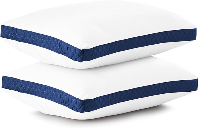 Lux Decor Bed Pillows for Sleeping - Pillows Queen Size Set of 2 - Hotel Quality Gusseted Down Alternative Pillows for Back, Stomach or Side Sleepers (Navy, 26x18)