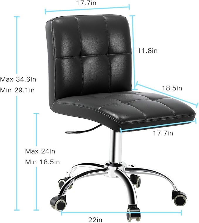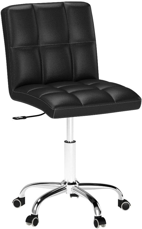 360° Office Desk Chair,PU Adjustable Rolling Task Chair with Backrest for Barber,Office,Home, Computer,360° Swivel,Armless (black)
