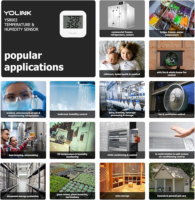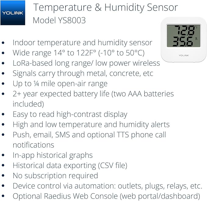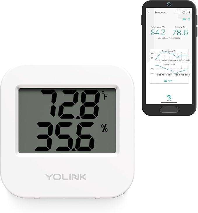 Smart Temperature Humidity Sensor Works w/Alexa IFTTT, 1/4 Mile Super Long Range Wireless Digital Hygrometer Indoor Thermometer Humidity Meter Temperature Humidity Monitor Sensor -YoLink Hub Required