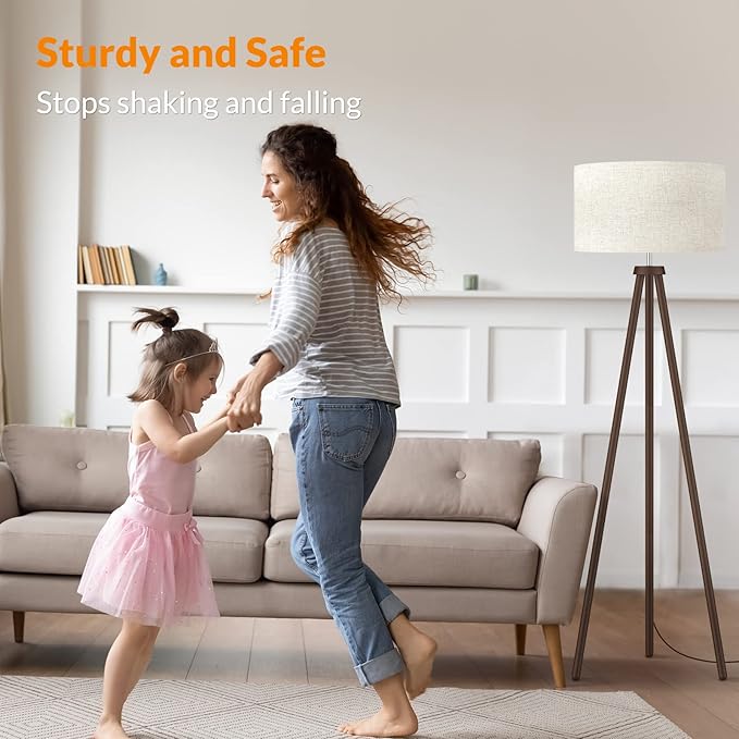LEPOWER Wood Tripod Floor Lamp, Mid Century Standing Lamp for Living Room, Flaxen Lamp Shade, Modern Design Standing Lamp with E26 Lamp Base, Tall Floor Lamp for Bedroom, Study Room and Office Walnut