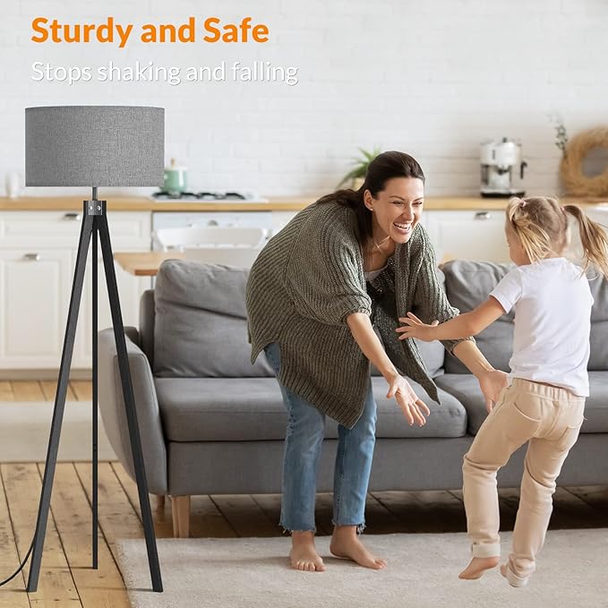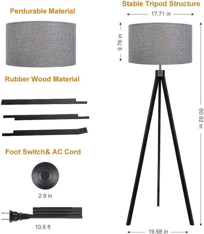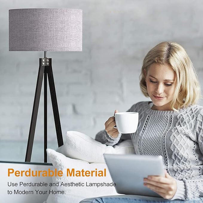 About This Good Quality Material: The Modern floor lamp is integrated with good-quality Nature Rubber wood tripod, which is enduring,...