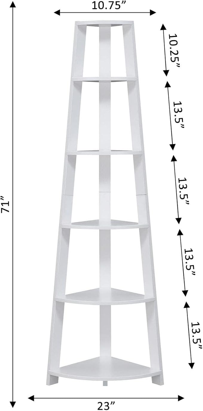 Convenience Concepts Newport 5 Tier Corner Bookcase, White