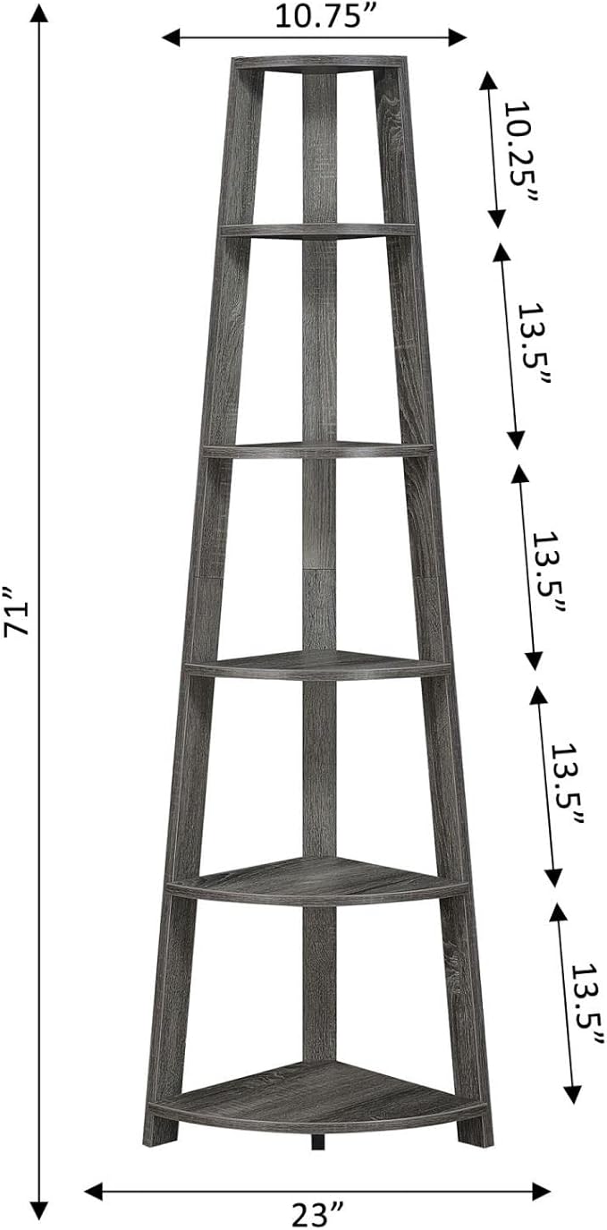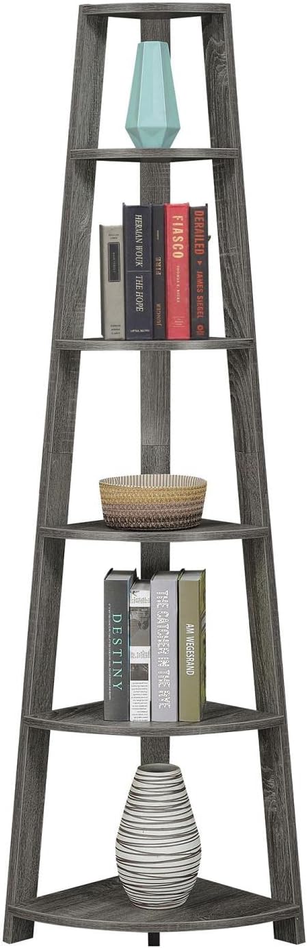 Convenience Concepts Newport 5 Tier Corner Bookcase, Weathered Gray