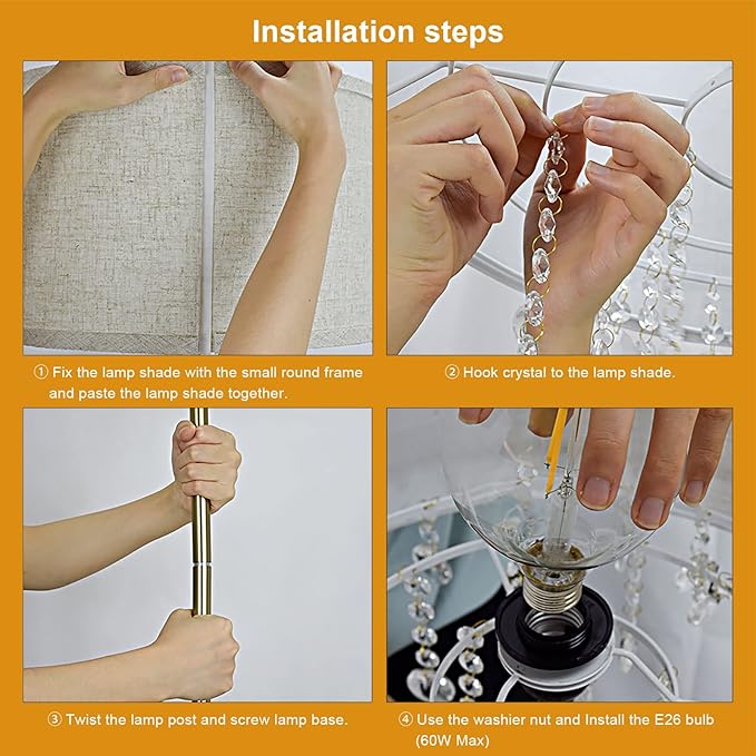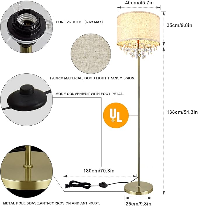About This ▶DECORATIONS FOR MANY OCCASIONS: This floor lamp is Elegant and unique, selected high-quality crystal,better transmittance,matching fabric drum shade,...