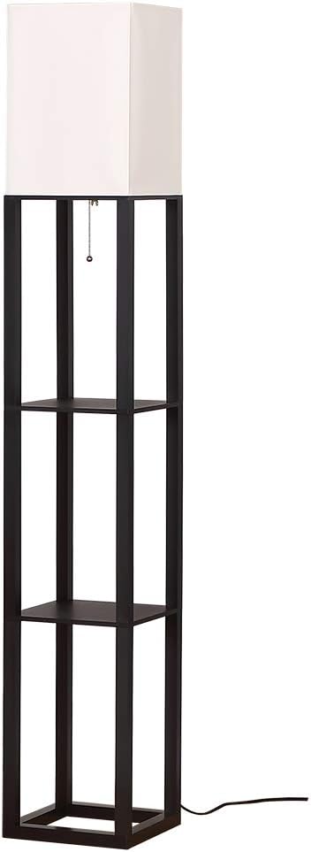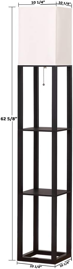 Floor Lamp,Shelf Floor Lamp with LED Bulb,Display Shelves Floor Lamp,Floor Lamp for Living Room,Floor Lamp for Bedroom,White Linen Shade,Wood,Black