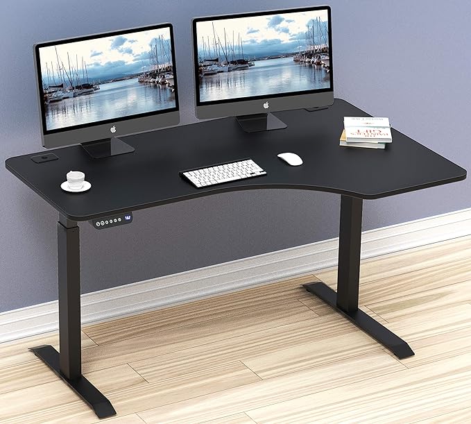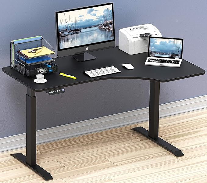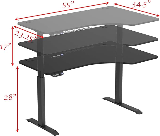 SHW 55-Inch Large Electric Height Adjustable L-Shaped Standing Desk with Right Facing Corner, Black