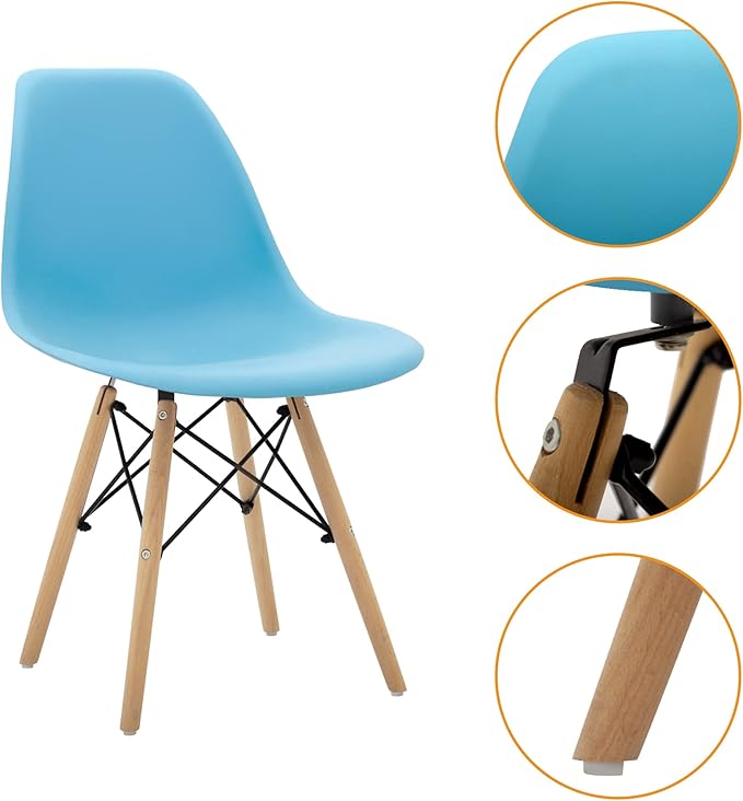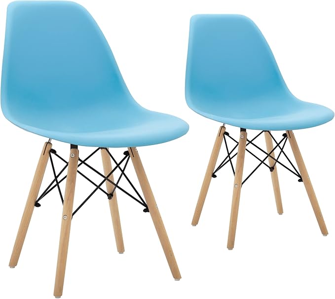CangLong Modern Mid-Century Side Chair Dining Chair with Natural Wood Legs for Kitchen, Living, Dining Room, Set of 2, Blue