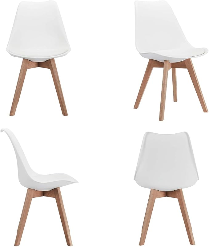 CangLong Mid Century Modern Side Chair with Wood Legs for Kitchen, Living Dining Room, Pack of 1, White (KU-191226)