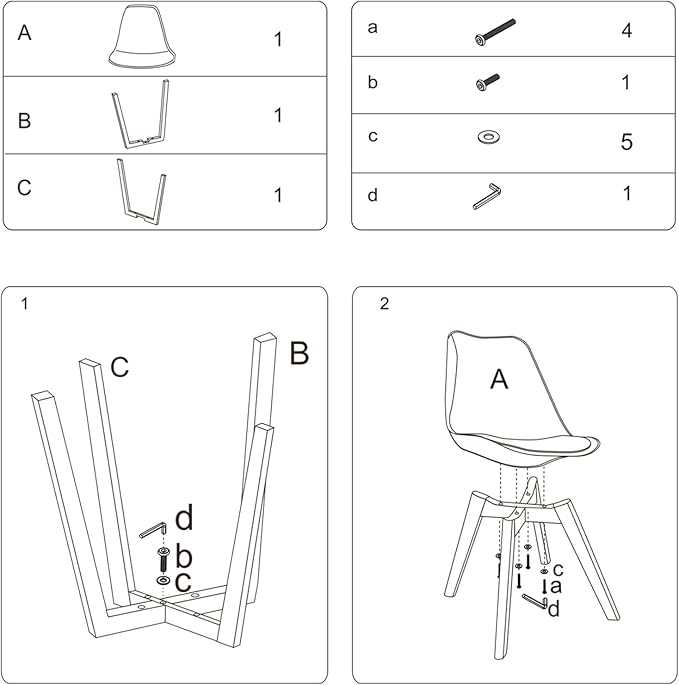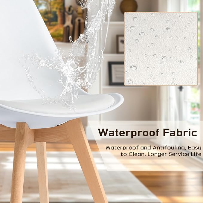 CangLong, White Modern Set, Shell Chair with Wood Legs for Kitchen, Dining, Living Room-Set of 4, Pack of 4