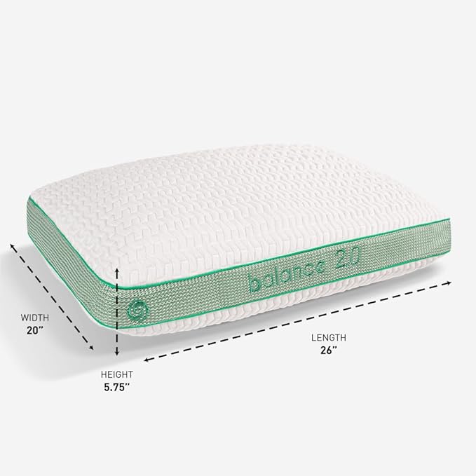 Bedgear Balance Performance Pillow - Size 2.0 - Moisture Wicking Bed Pillows for All Sleep Positions - Medium Firmness - Washable Cover - Back, Stomach, Side Sleeper Pillow - 20" W x 26" L x 5.75" H