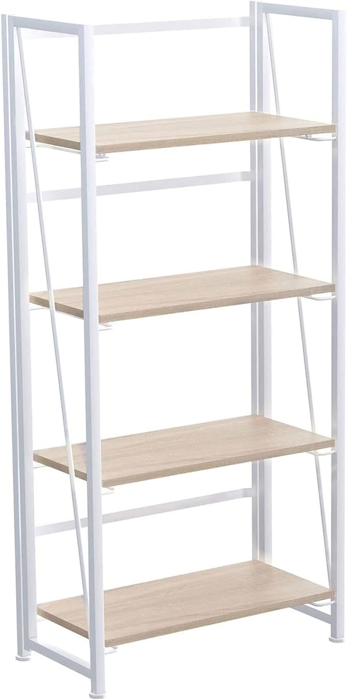 No-Assembly Folding Bookshelf Storage Shelves 4 Tiers Vintage Multifunctional Plant Flower Stand Storage Rack Shelves Bookcase for Home Office (White)