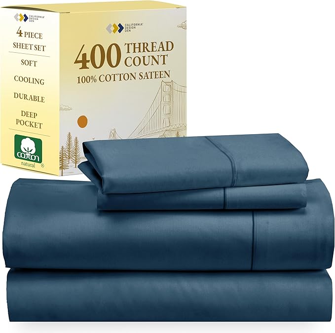 California Design Den Soft 100% Cotton Sheets, Full Size Sheet Sets, 4 Pc Set, 400 Thread Count Sateen Bedding, Deep Pocket Sheets, Cooling Sheets, Full Size Sheets, Breathable Bed Set (Peacock Blue)