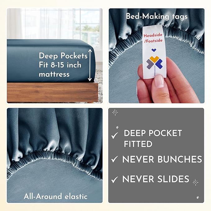 California Design Den 100% Cotton Sheets, Twin XL Sheets Set, 3 Pieces, 400 Thread Count Sateen, Bedding for Dorm Rooms & Adults, Deep Pocket Sheets, Cooling Sheets (Peacock Blue)