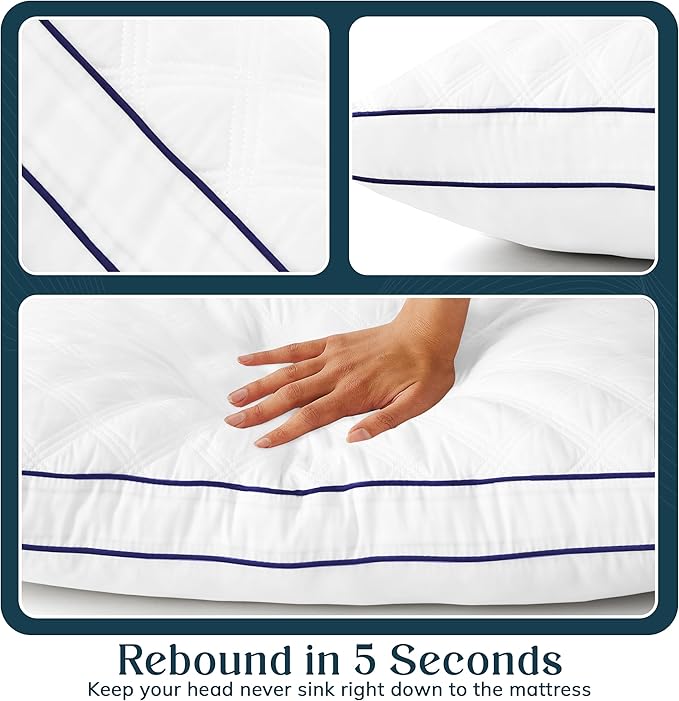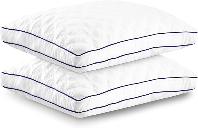 Lux Decor Collection Gusseted Pillows - Set of 2 King Size Pillows - Comfortable Breathable Bed Pillows for Sleeping - Side, Back and Stomach Sleepers (Navy Piping,18x36)