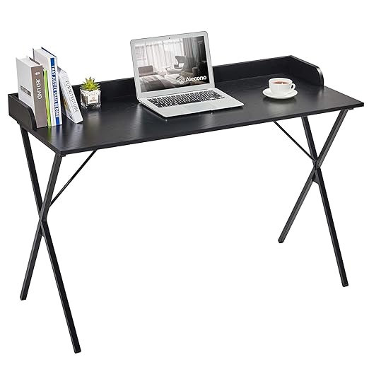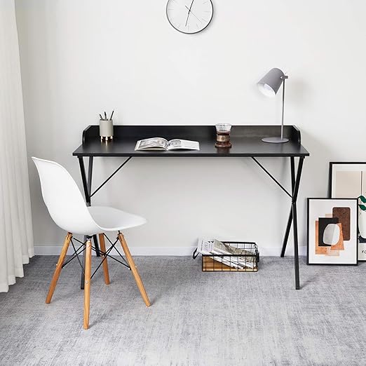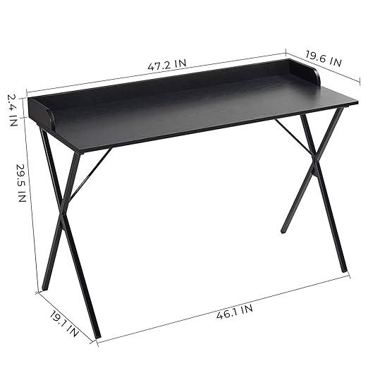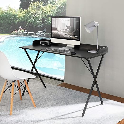 Alecono Black Desk 47'' Writing Computer Desk for Home Office Small Spaces Modern Study Sturdy PC Gaming Table, Black Wood