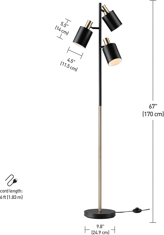 Globe Electric 67354 67" 3-Light Track Tree Lamp, Matte Black, Matte Brass Accents, Floor Lamp for Living Room, Adjustable Lamp, Home Office Accessories, Home Improvement, Reading Lamp