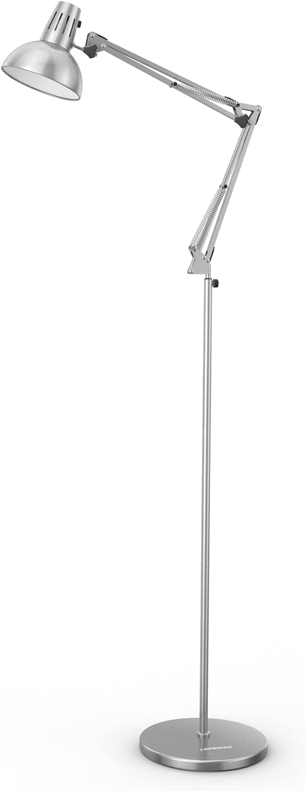 LEPOWER Floor Lamp, Swing Arm Floor Standing Lamp, Industrial Floor Lamp with Heavy Metal Base, E26 Lamp Base Floor Light, Modern Standing Reading Lamp for Living Room, Bedroom, Office Sliver