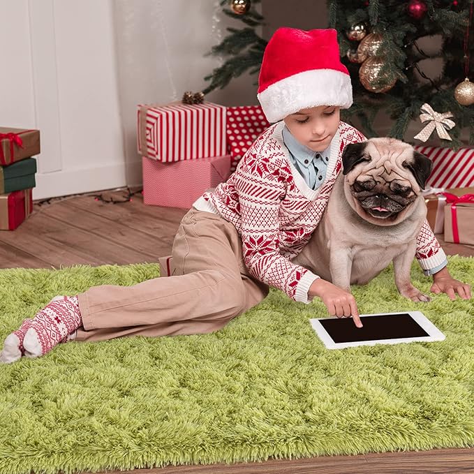 Noahas Ultra Soft Fluffy Bedroom Rugs Kids Room Carpet Modern Shaggy Area Rugs Home Decor 2.6' X 5.3', Green