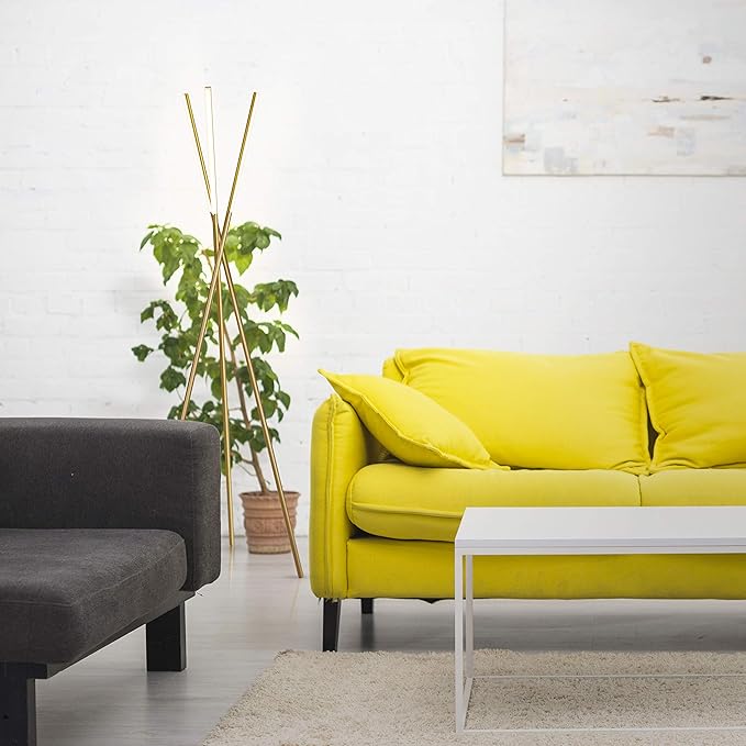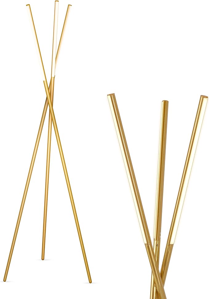 Brightech Stix Floor Lamp, Tall Tree Lamp for Offices, LED Tripod Lamp for Living Rooms, Great Living Room Décor, Dimmable Standing Lamp With 3 Lights for Bedroom Reading - Gold/Brass