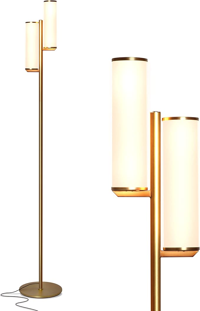 Brightech Gemini Floor Lamp, Dimmable Standing Lamp with Two Lights for Bedroom Reading, Modern Tall Tree Lamp for Offices, Mid-Century LED Lamp for Living Rooms, Great Living Room Decor - Gold/Brass