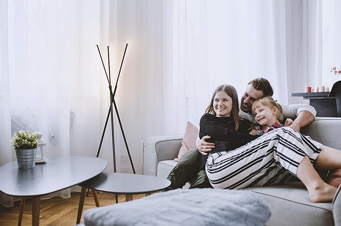 Brightech Stix Floor Lamp, Tall Tree Lamp for Offices, LED Tripod Lamp for Living Rooms, Great Living Room Décor, Dimmable Standing Lamp with 3 Lights for Bedroom Reading - Black