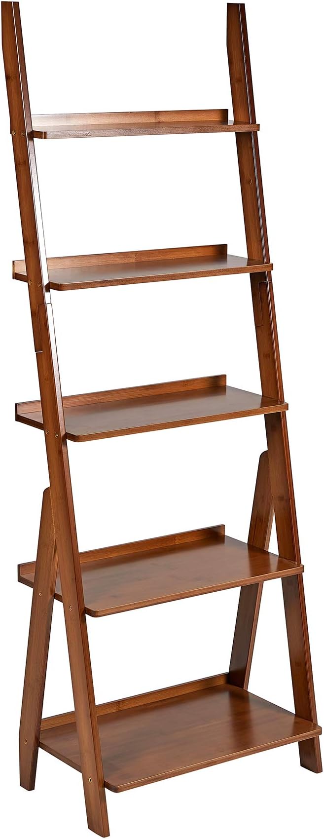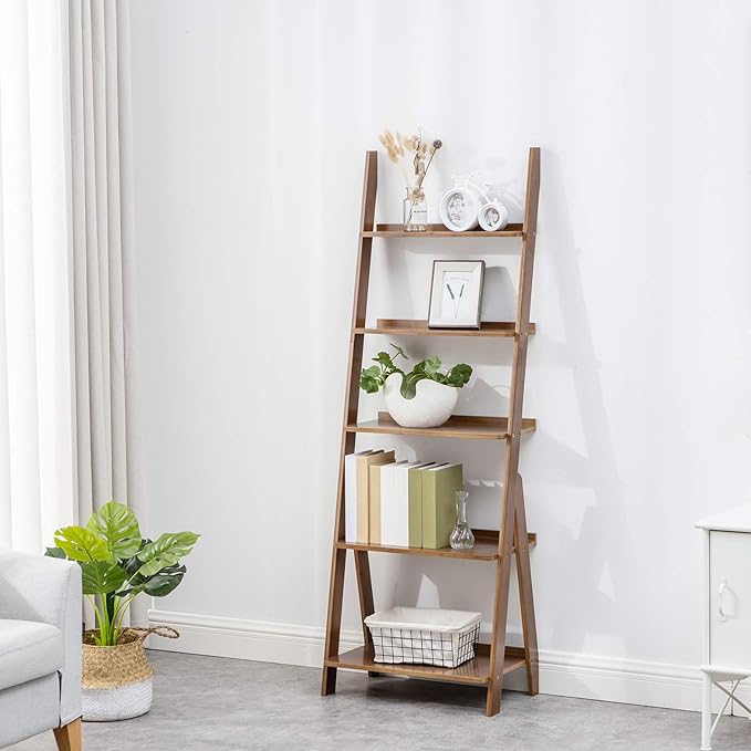 Bookshelf & Ladder Shelf &Storage Rack & Multipurpose Bamboo Organizer Shelves Furniture for Home Office, Living Room, Kitchen, Office 5 Tier (Brown)