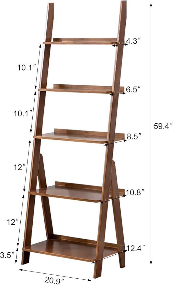 About This 【 BAMBOO LEANING LADDER SHELF 】Features with 5-tier open shelves, this ladder shelf can maximize the vertical storage...