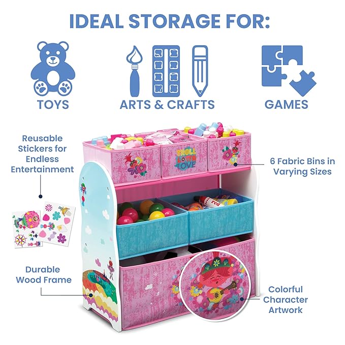 Delta Children Design and Store 6 Bin Toy Storage Organizer, Trolls World Tour