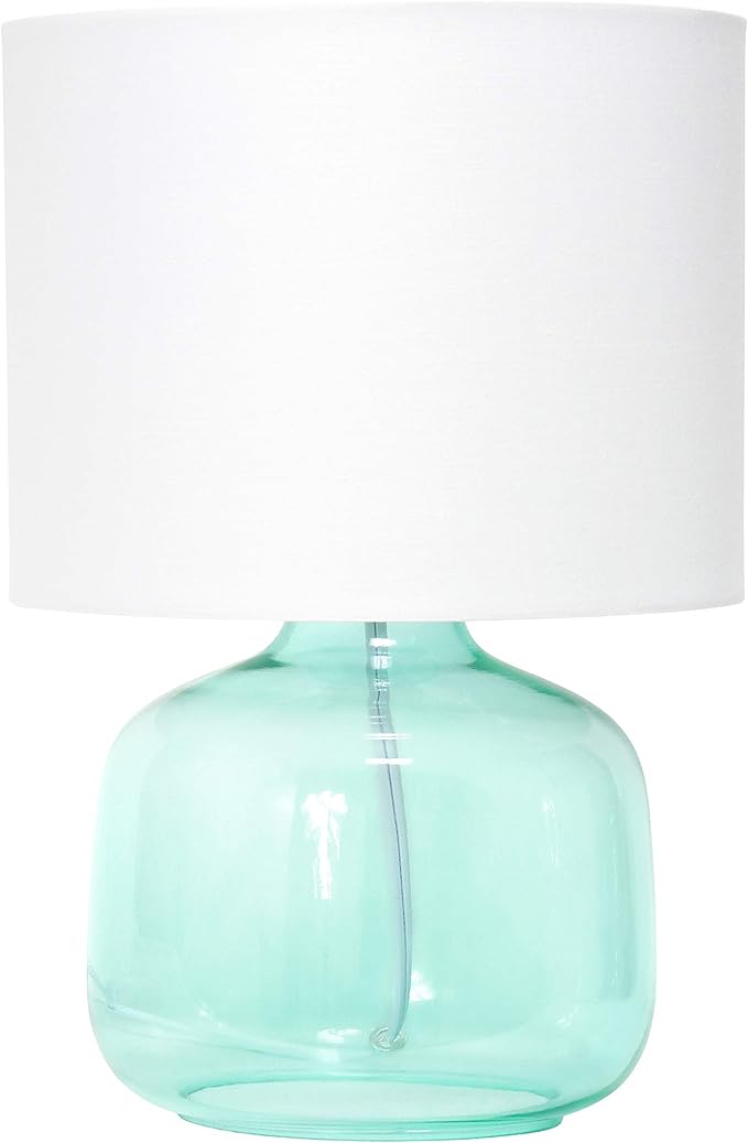 Simple Designs LT2064-AOW Aqua Glass Table Lamp with White Fabric Shade