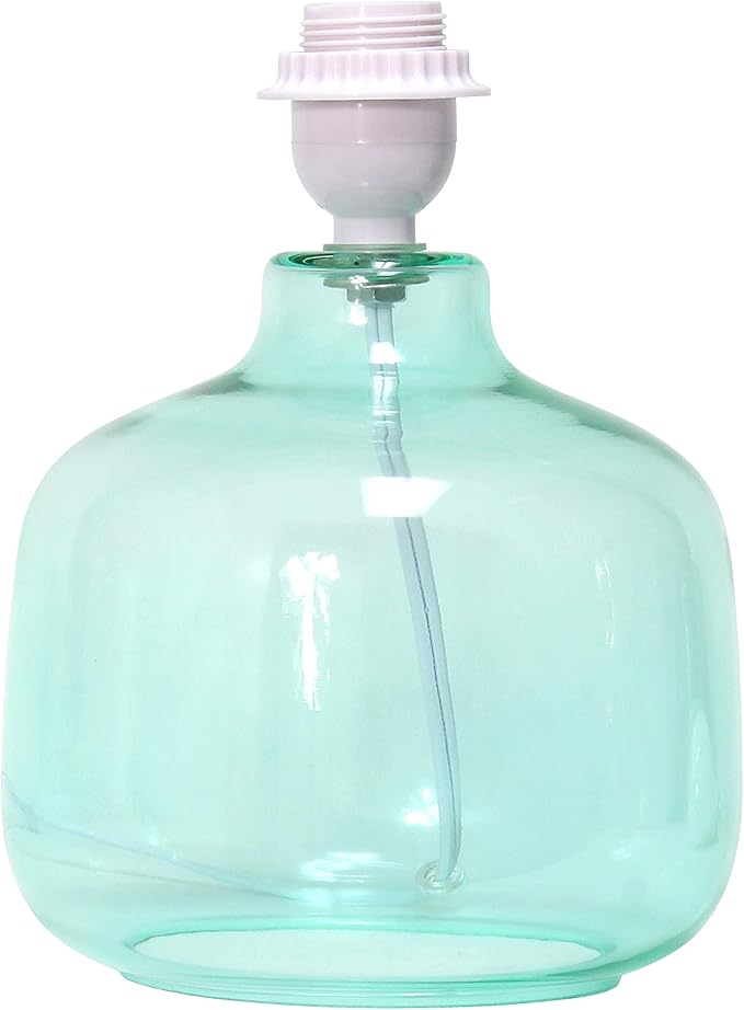 About This Aqua glass base *Open bottom base* White fabric drum shade Easily accessible rotary switch located on the cord...