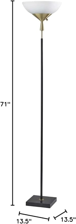 Adesso 5007-01 Noah 300 Watt Torchiere, 71 in., 2 x 150W, Black w/Antique Brass, 1 Floor Lamp